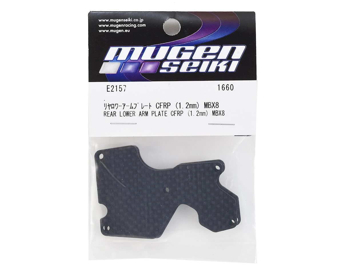 This is a pack of two optional Mugen 1.2mm MBX8 Graphite Rear Lower Arm Plates. These plates attach to the suspension arm to increase stiffness. Mounting hardware not included.