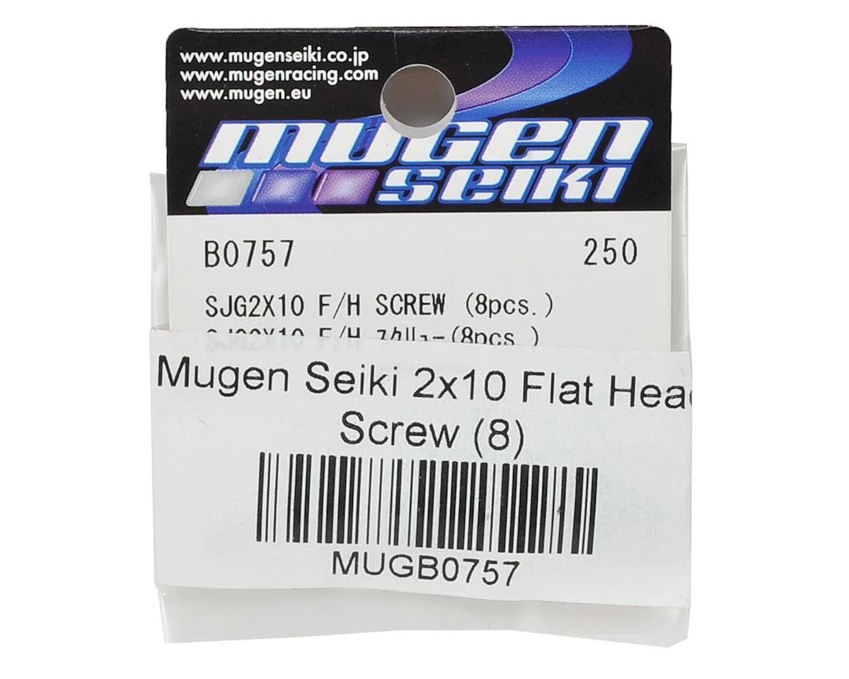 This is a pack of eight replacement Mugen 2x10mm Flat Head Hex Screws.Â