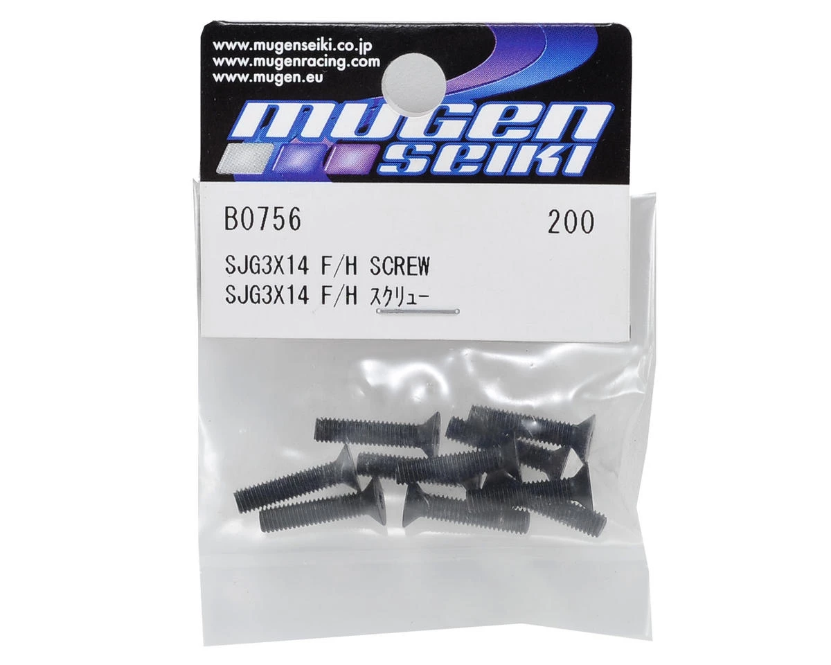 This is a pack of ten replacement Mugen 3x14mm SJG Flat Head Screws, and are intended for use with the Mugen MBX7 1/8 scale nitro buggy.Â