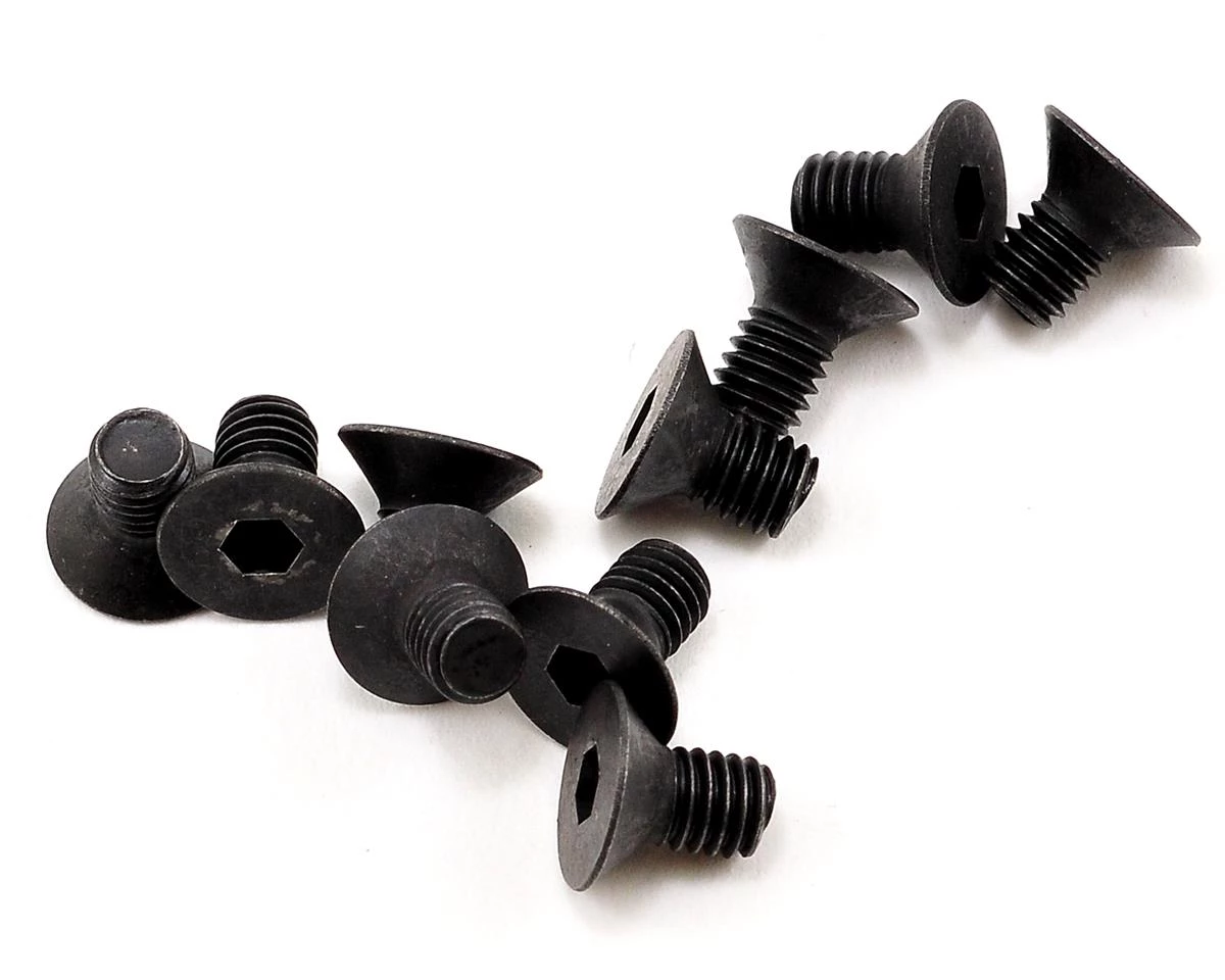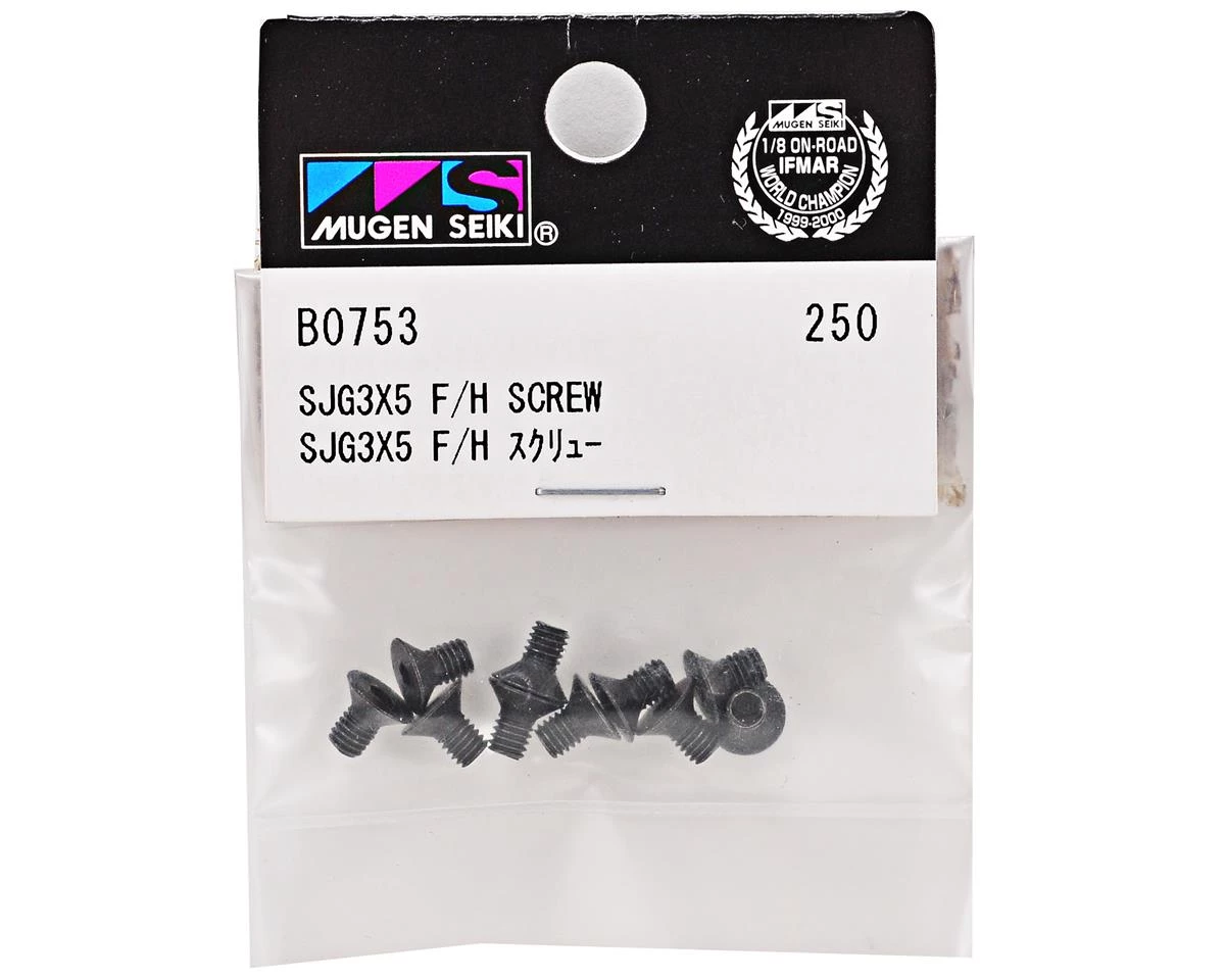 This is a pack of ten replacement Mugen SJG 3×5 Flat Head Screws, and are intended for use with the Mugen MTX-5.