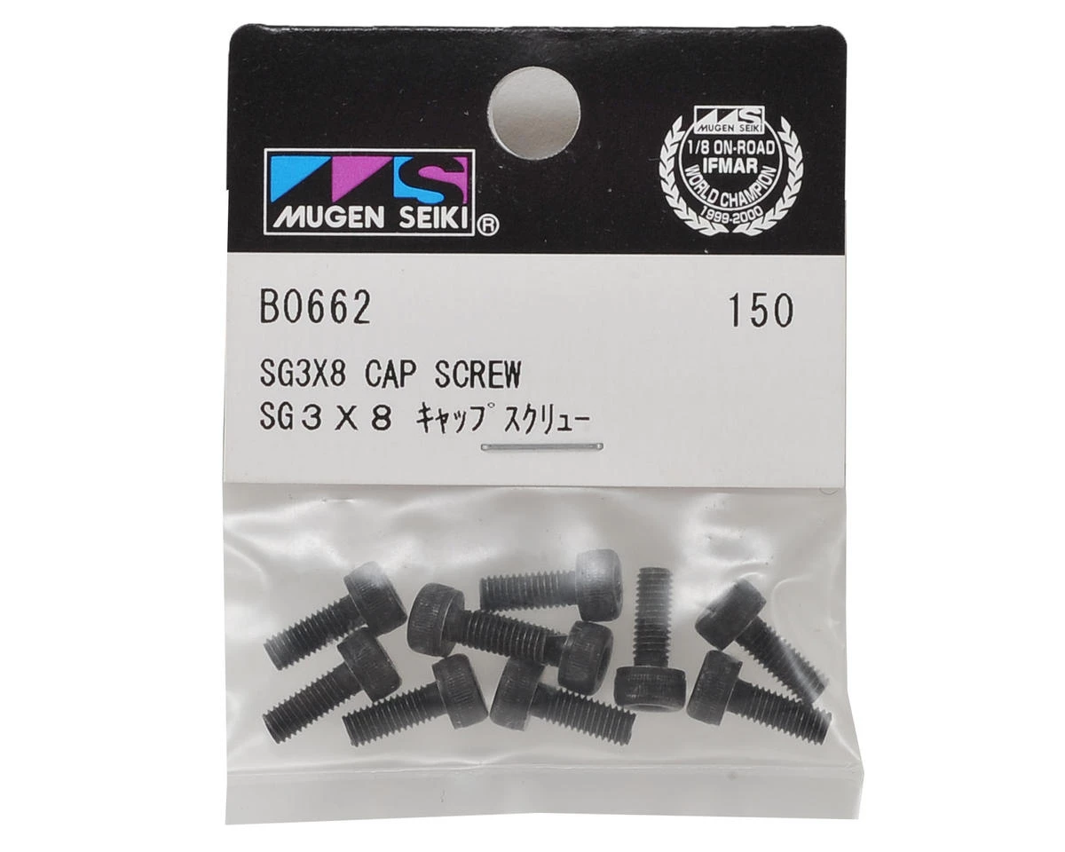 This is a pack of ten Mugen 3x8mm SG Cap Head Screws.Â