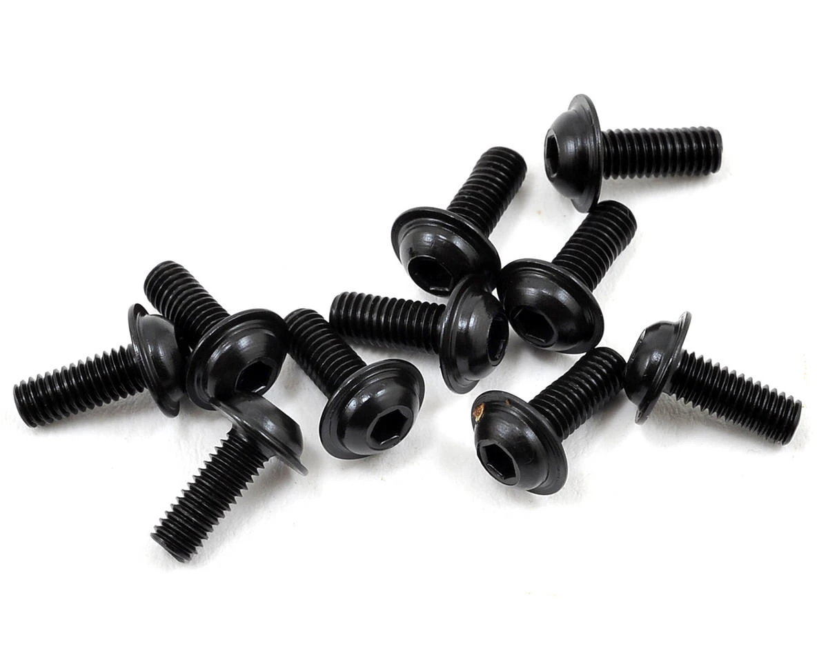 This is a pack of ten replacement Mugen 3x8mm SJG Flanged Button Head Hex Screws.Â