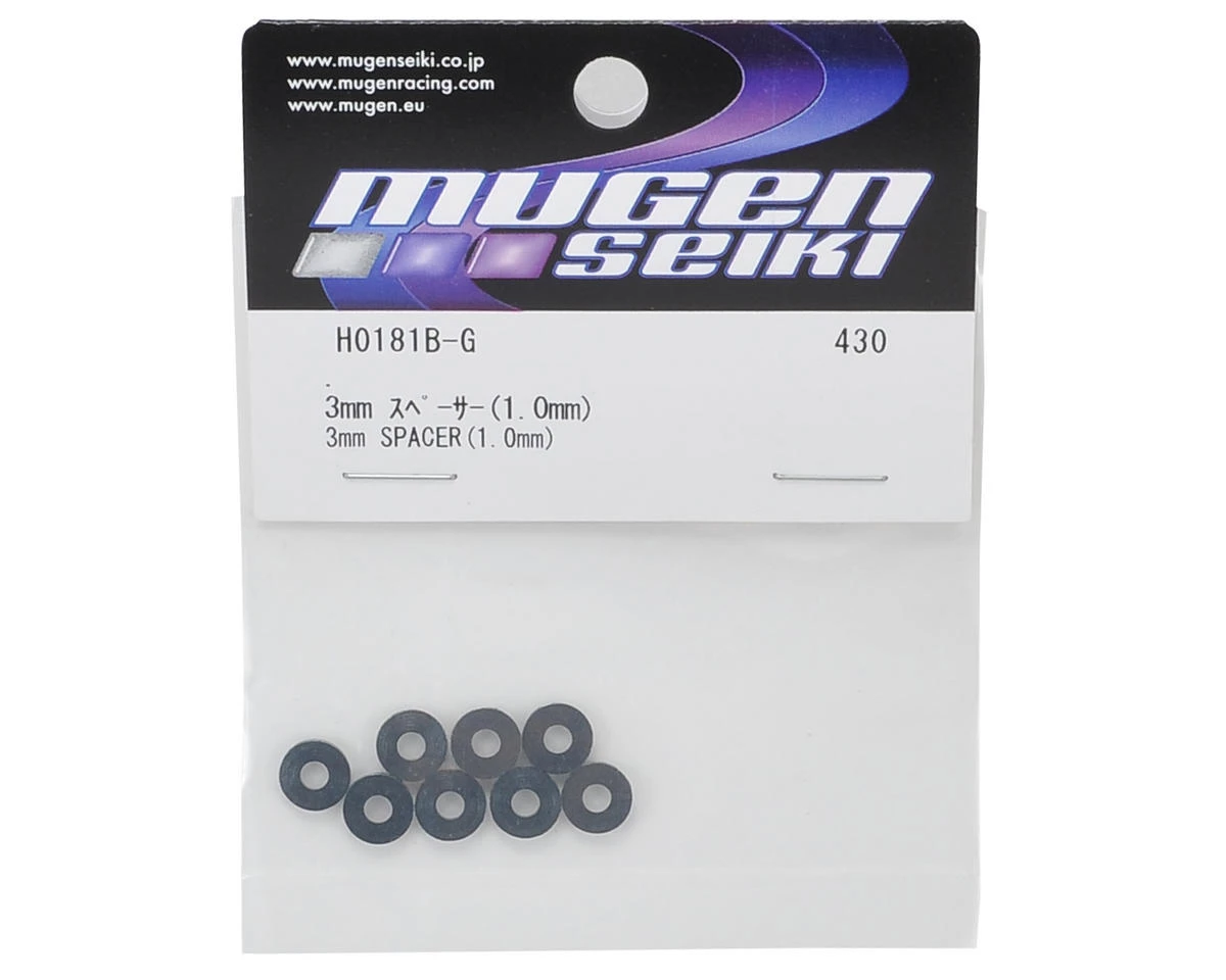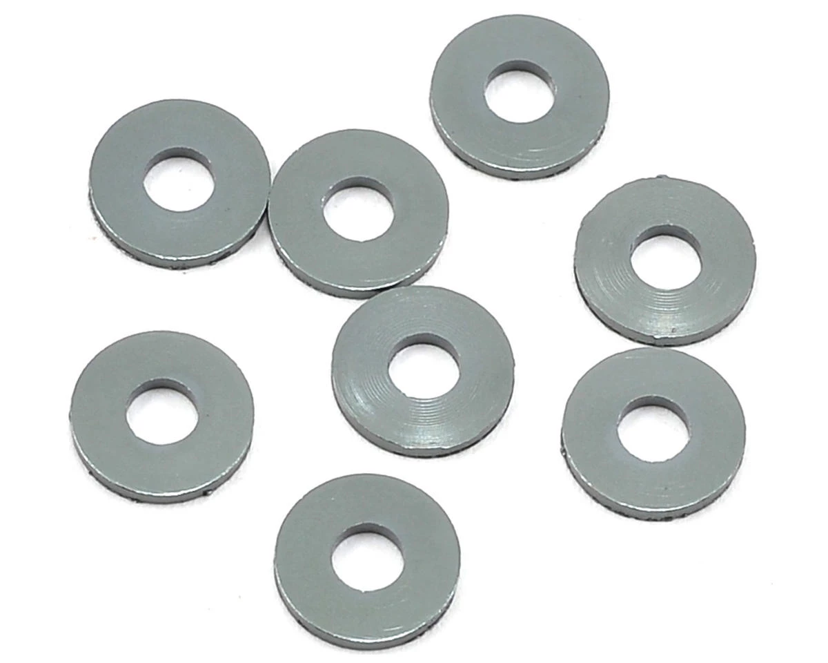 This is a pack of eight replacement Mugen 3x8x1mm Aluminum Roll Center Spacers.