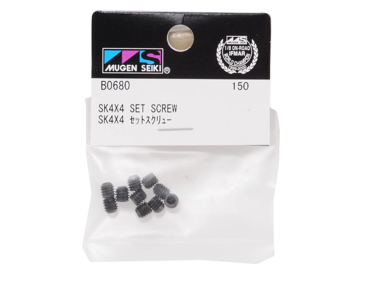 This is a pack of ten replacement 4x4mm set screws from Mugen Seiki.