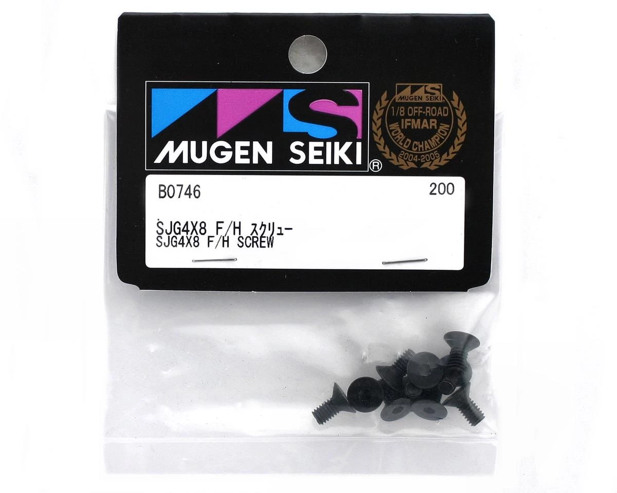 This is a pack of ten replacement 4x8mm flat head screws from Mugen Seiki.