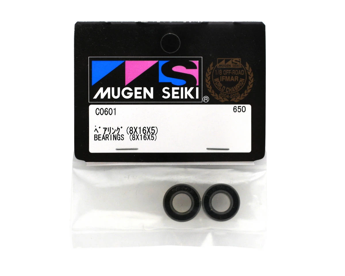 This is a pack of two replacement 8x16mm bearings from Mugen. These 8×16 bearings are the standard bearing for 1/8th scale off-road vehicles, both for internal bearings in the diff cases as well as external wheel bearings.