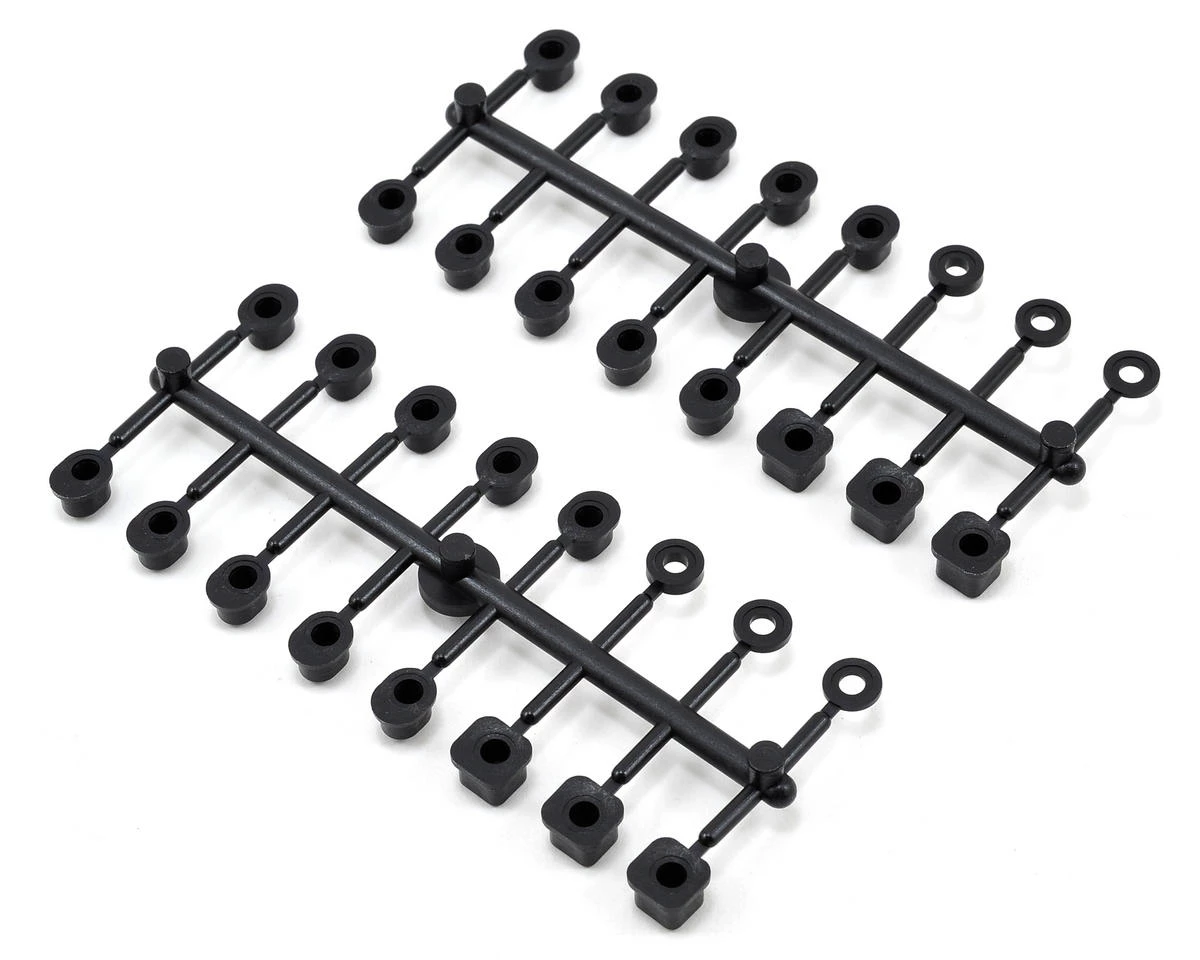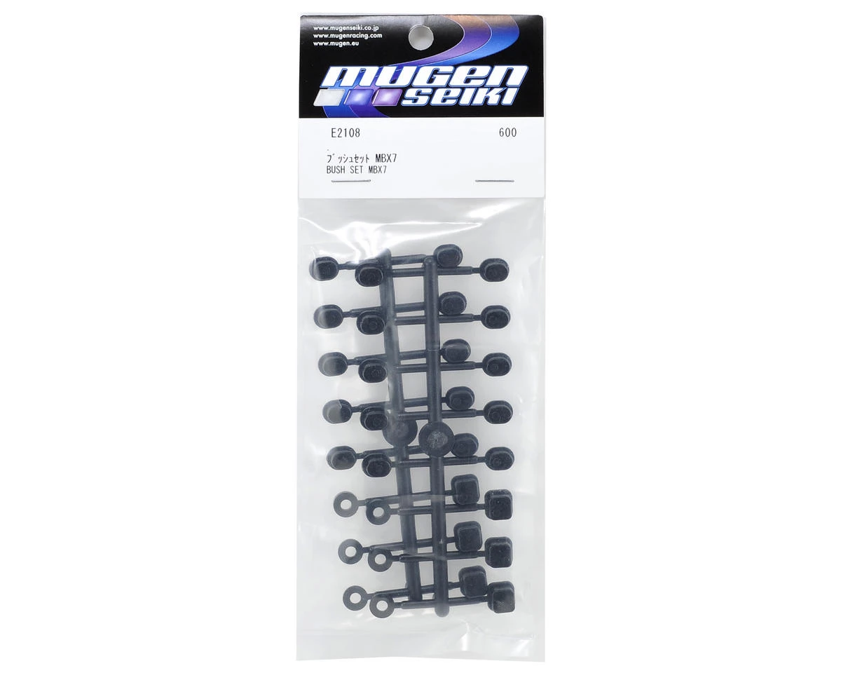 This is a replacement Mugen Complete Bushing Set, and is intended for use with the Mugen MBX7 1/8 scale nitro buggy. This complete set includes all of bushings used in the suspension mounts to adjust toe angle, kick-up and anti-squat on the vehicle.