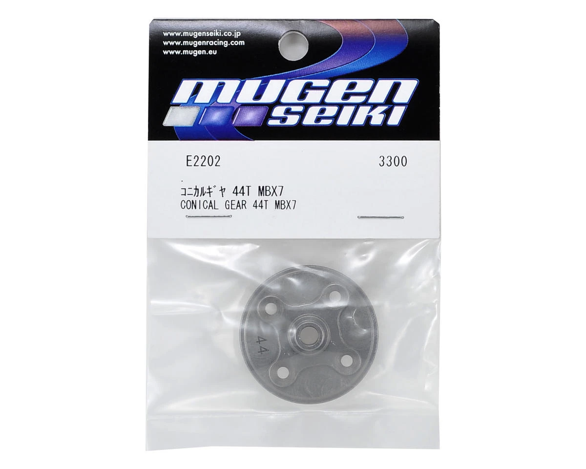 This is a replacement Mugen 44 Tooth Conical Gear, and is intended for use with the Mugen MBX7 1/8 scale nitro buggy. This gear is used on the front and rear differentials.Â