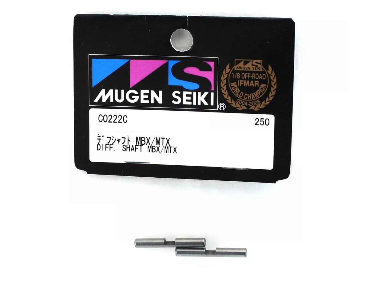 This is a set of differential cross shafts for the Mugen MBX5 differentials. The cross shaft is the shaft that the internal diff gears are attached to inside the differential.