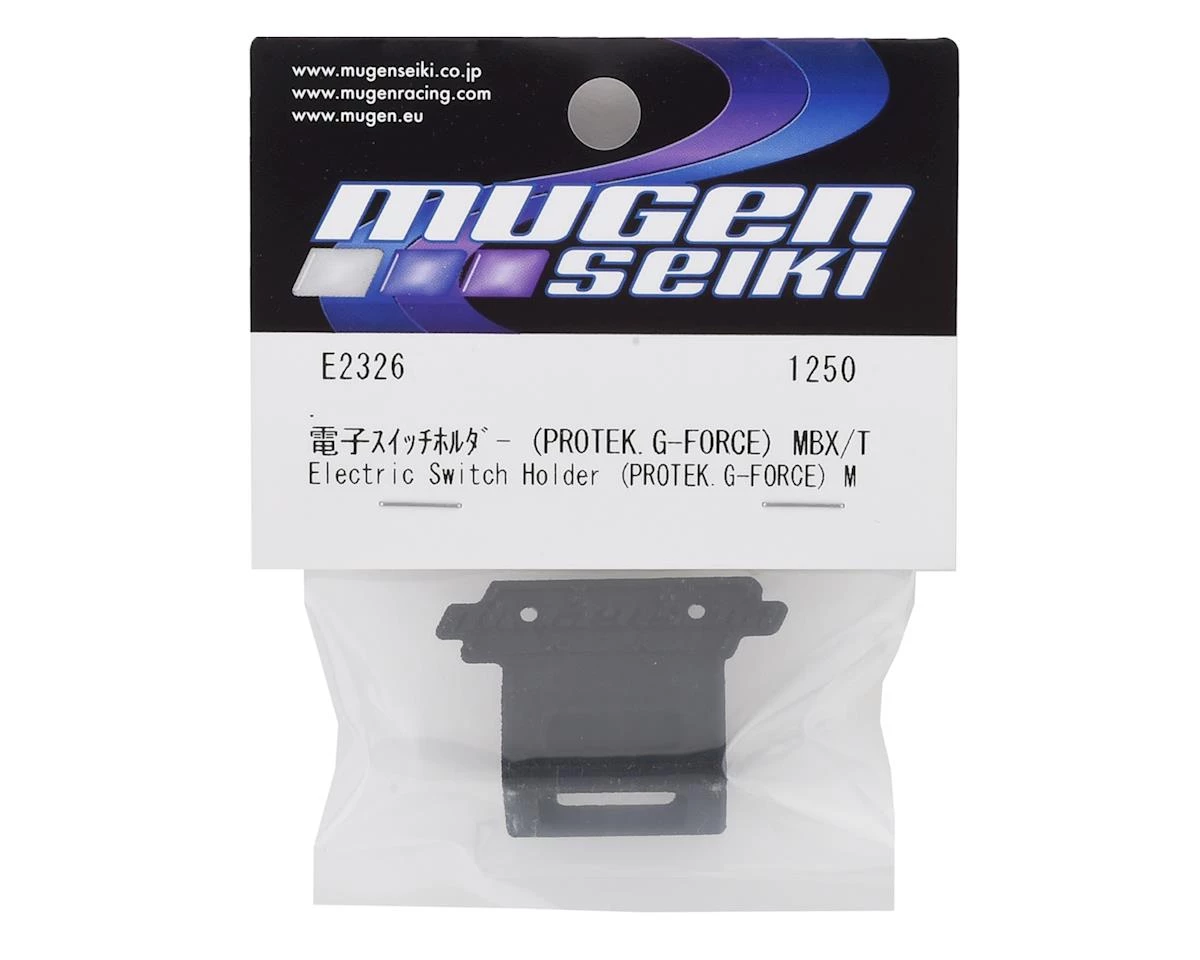 The Mugen Seiki Electric Switch Holder for ProTek and G-Force type electric switches is a great upgrade for the Mugen MBX7, MBX8 and MGT7 series models. This handy switch mount screws into the stock switch screw holes and holds an electric switch on to the side of the radio box, providing easy access to the switch. The switch is safe and tucked away, which will give your Buggy, Truggy or GT vehicle a clean look. There are two different switch holders available made to accommodate different switches. There are abbreviations on the side of each switch so you know exactly what switch fits each holder.