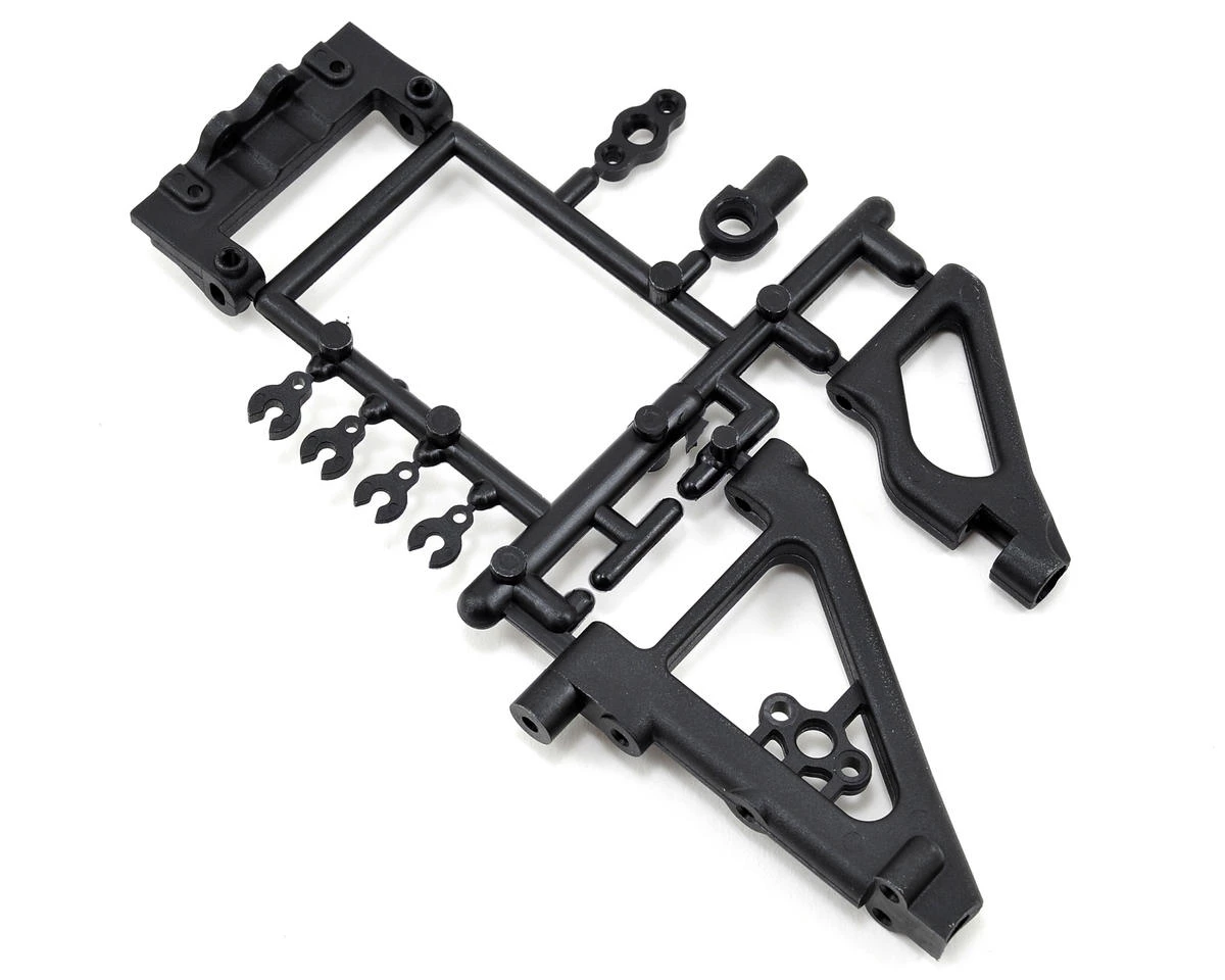 This is a replacement Mugen Front Lower/Upper Suspension Arm Set. This set also includes one arm link and four caster clips.Â