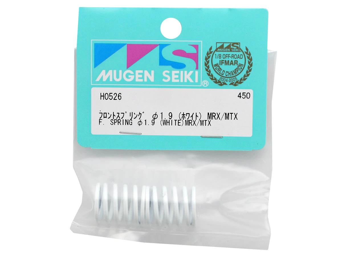 This is a set of two optional 1.9 white front shock springs from Mugen Seiki.