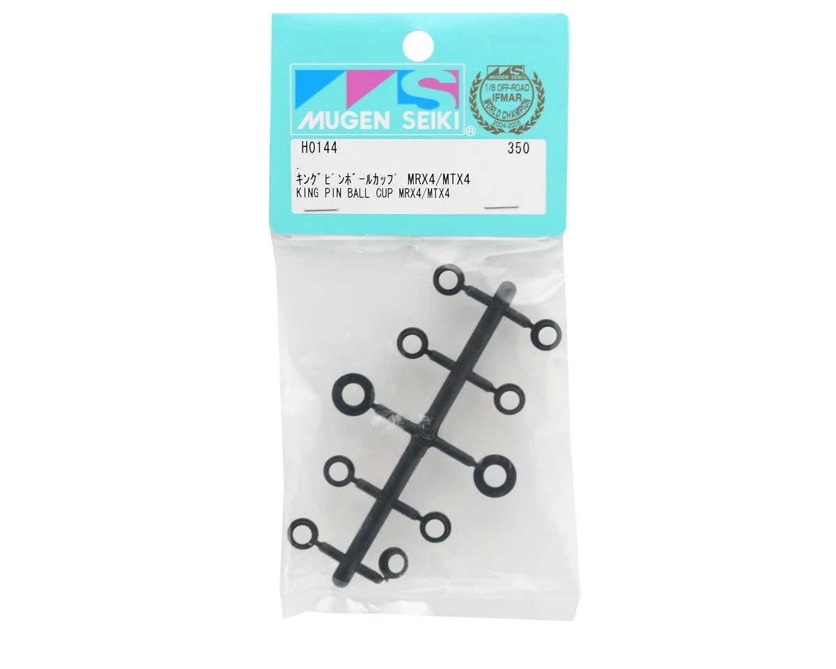 This is a replacement king pin ball cup set from Mugen Seiki. These ball cups go between the pillow ball, and the upright adjusting nuts.