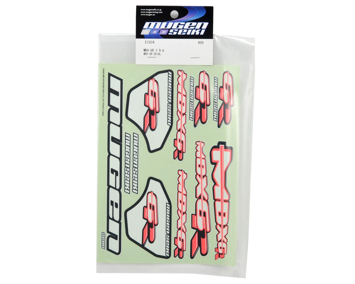 This is a replacement Mugen Decal Sheet, and is intended for use with the Mugen MBX6R 1/8 buggy.
