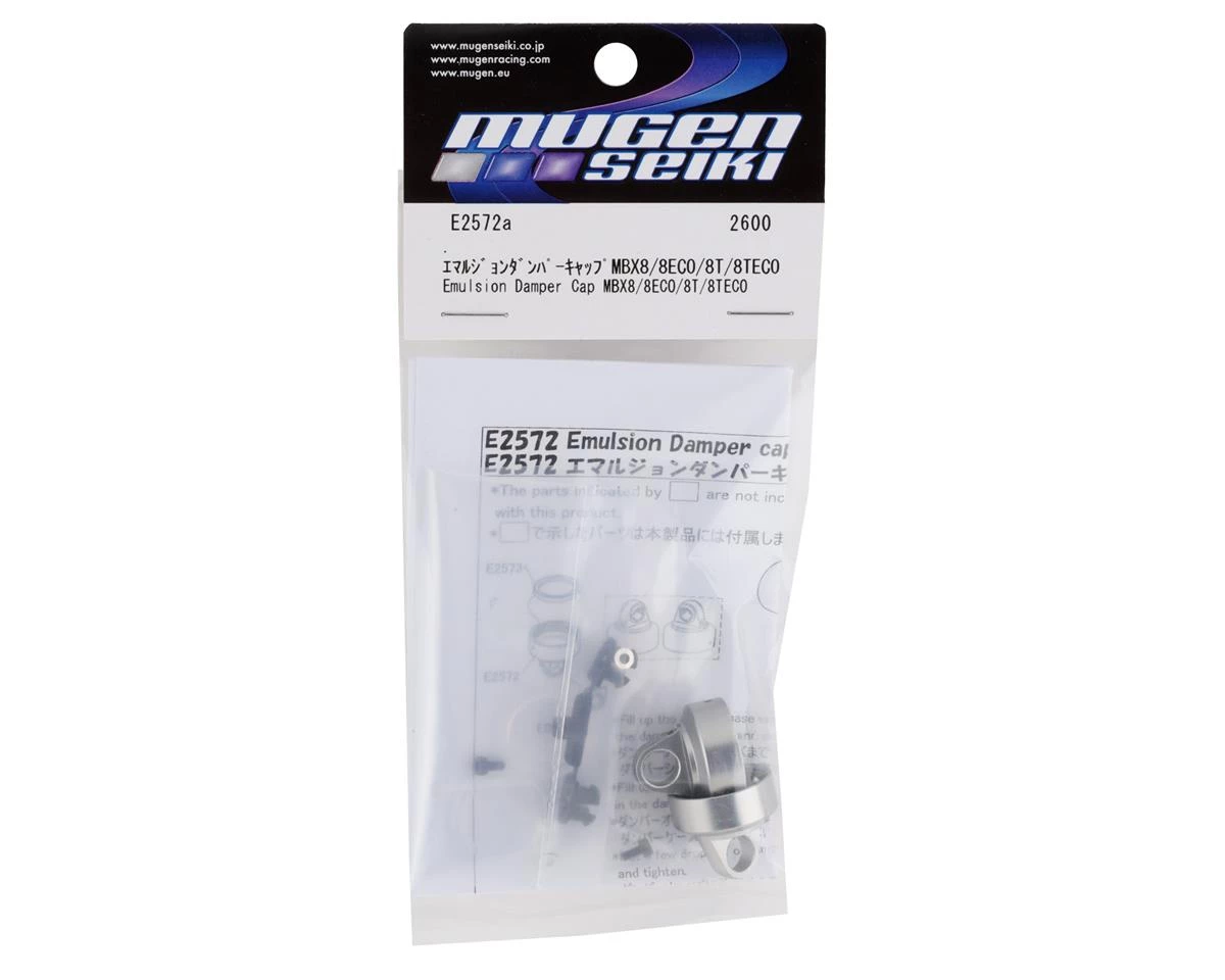 The Mugen MBX8 Emulsion Damper Caps are the updated replacement for Mugen 16mm shocks. When track conditions change these caps allow the use of the stock bladder or to run emulsion style. The emulsion damper caps can improve jumping performance while giving you a more precise feel when changing directions. This also has the added benefit of improving high speed handling as well.Â