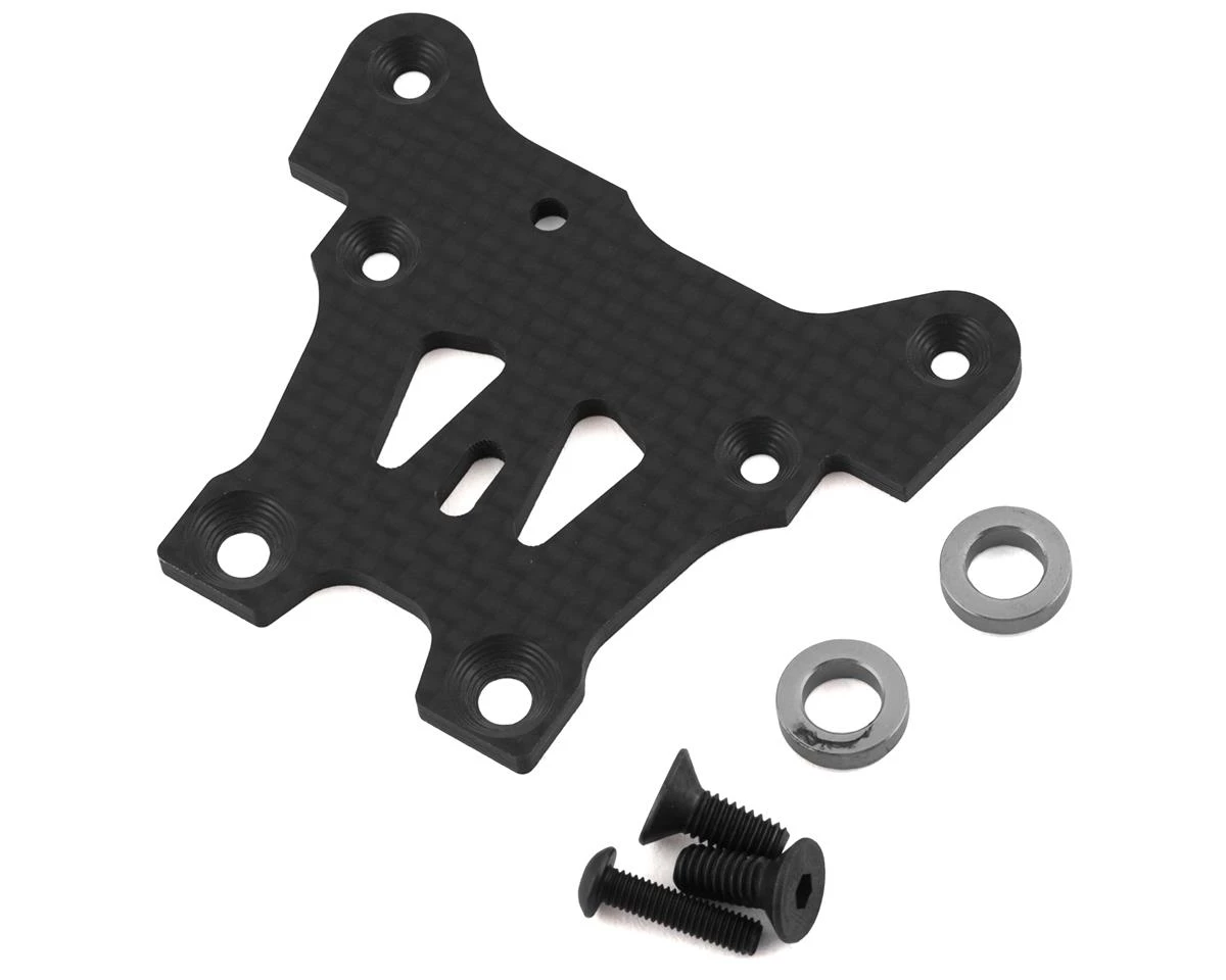 Mugen Seiki MBX8 Graphite Front Upper Steering Plate. This optional graphite front upper steering plate for the MBX8R/8RE/8/E and MBX8T/E. Using this steering plate will increase the stiffness between the steering posts and front bulkhead. Package includes one steering plate, two bearings and hardware.
