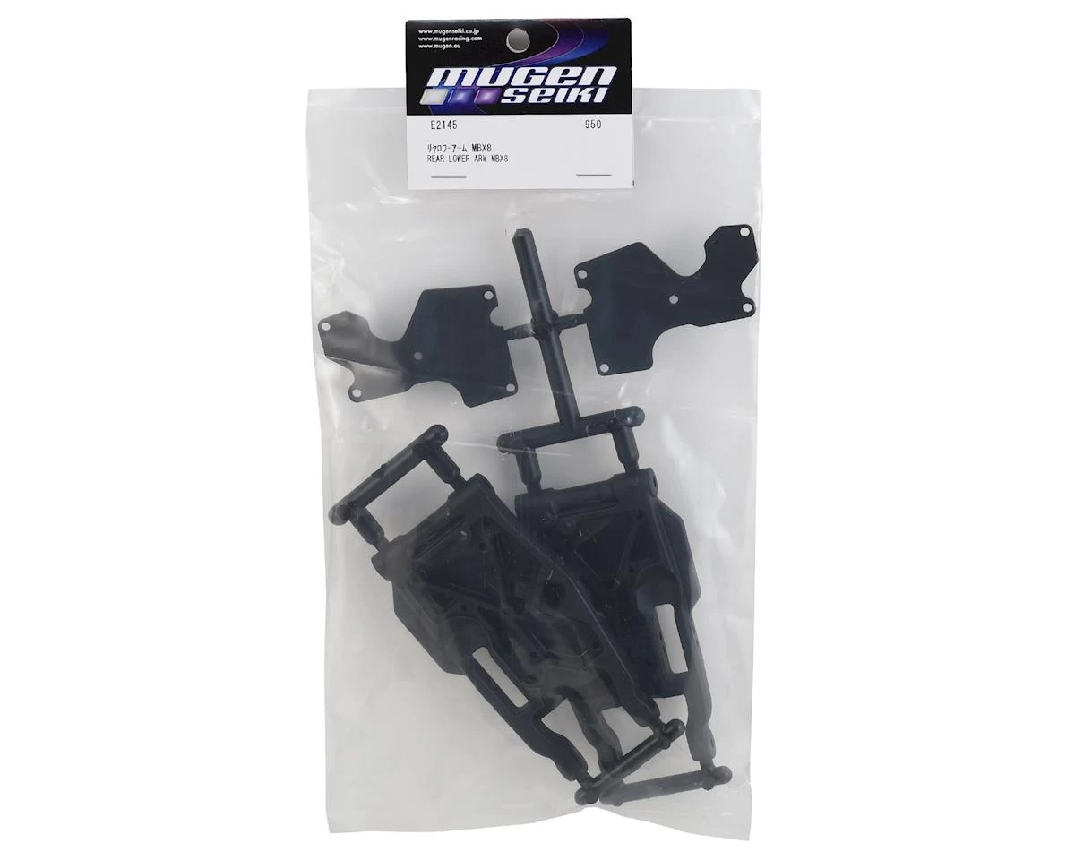 This is a replacement Mugen MBX8 Rear Lower Suspension Arm Set. This set also includes the plastic arm inserts, but no mounting hardware.