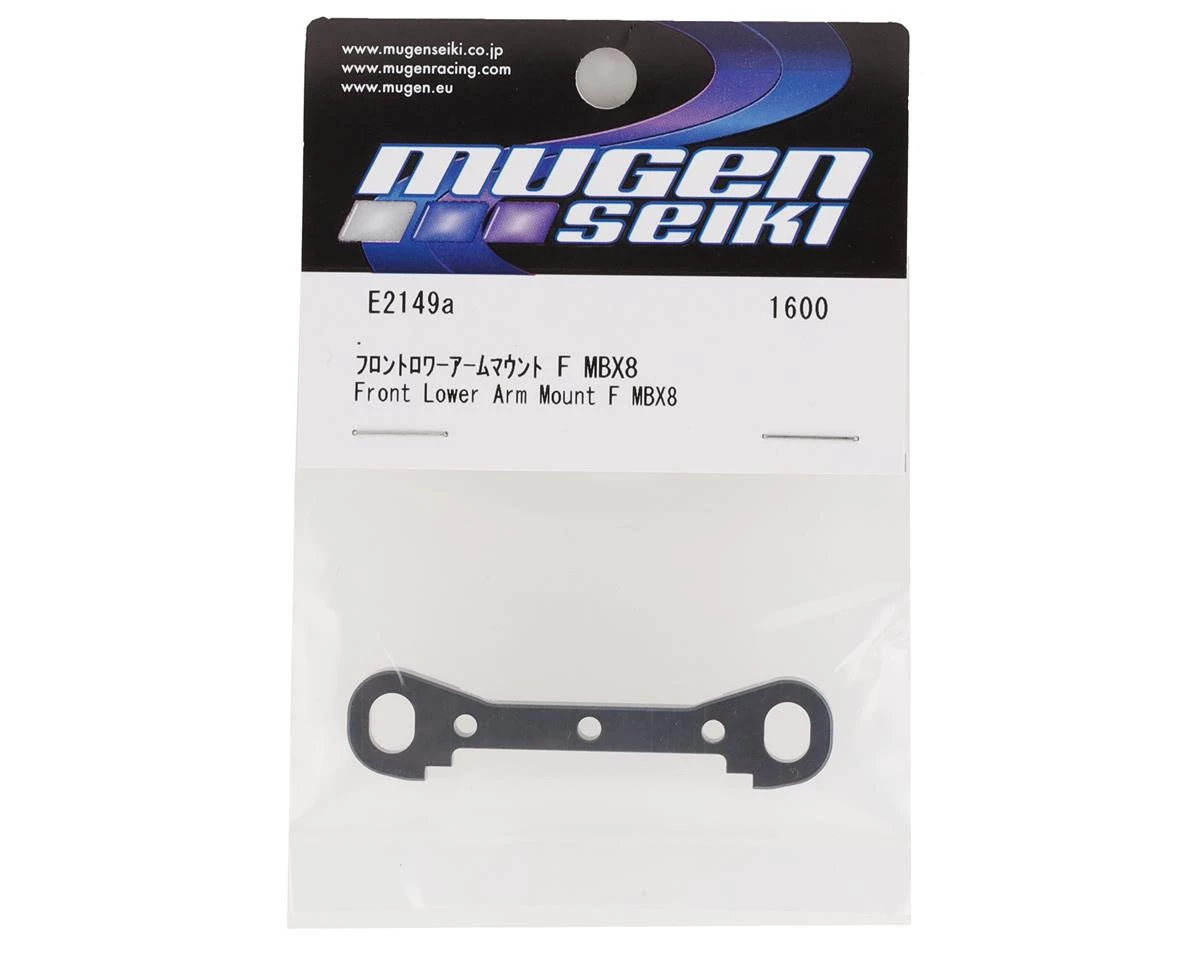 Mugen Seiki MBX8R Aluminum Front/Front Lower Arm Mount. This replacement lower arm mount is intended for the Mugen Seiki MBX8R and MBX8R ECO. Package includes one lower arm mount.