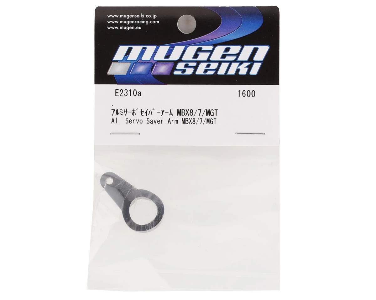Mugen Seiki MBX8R Aluminum Servo Saver Arm. This optional servo saver arm is intended for the Mugen Seiki MBX8R or MBX8R ECO. Package includes one servo saver arm.
