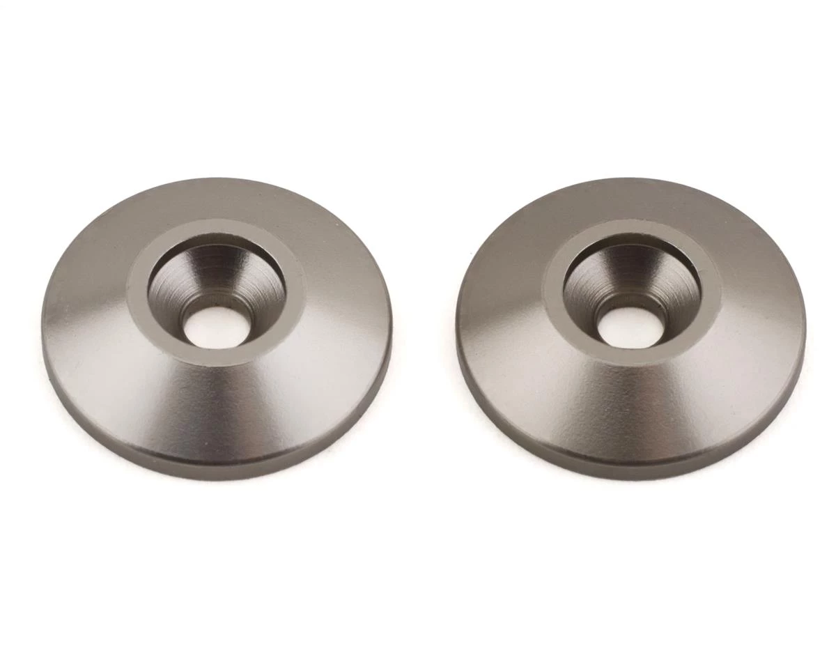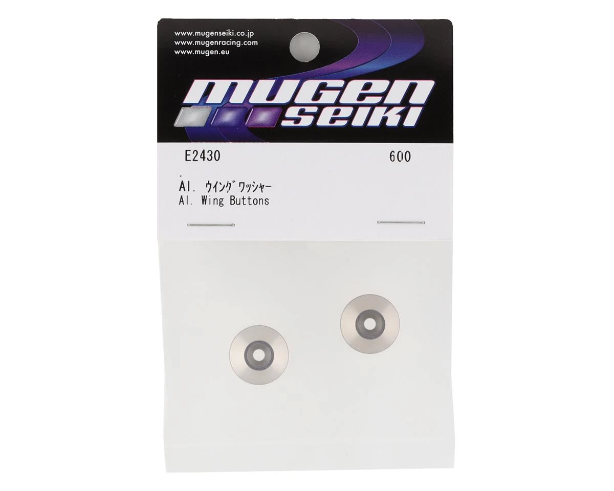 Mugen MBX8R Aluminum Wing Buttons. Package includes two replacement wing mount buttons.