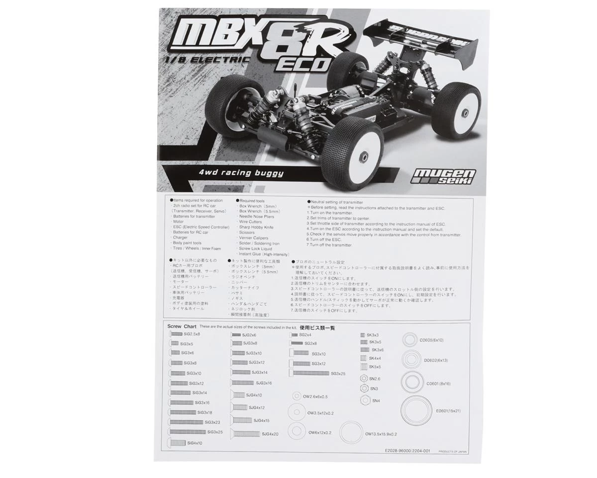 Mugen Seiki MBX8R ECO Instruction Manual. This replacement manual is intended for the MBX8R ECO. Package includes one instruction manual.