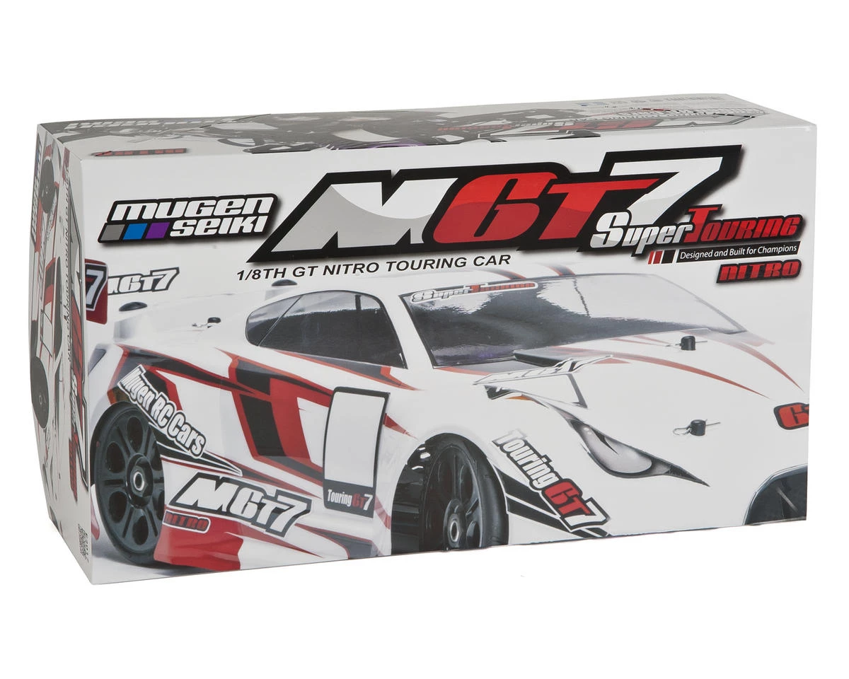 This is the Mugen Seiki MGT7 1/8 Scale Nitro On-Road Sedan Kit. Based off the World Championship MBX7 Nitro Buggy platform, The MGT7 incorporates the World Championship pedigree with updated parts to make this machine full fledged race ready GT on-road car.