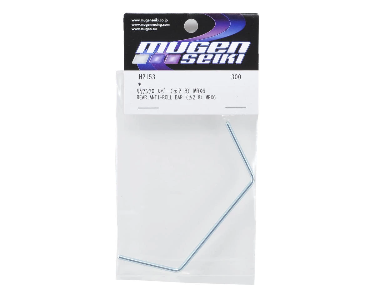 Mugen MRX6 2.8mm Rear Anti-Roll Bar. This is the optional 2.8 MRX6 rear roll bar, and is the lightest of the three available offerings (2.8, 2.9 [stock], 3.0 [MUGH2155]).