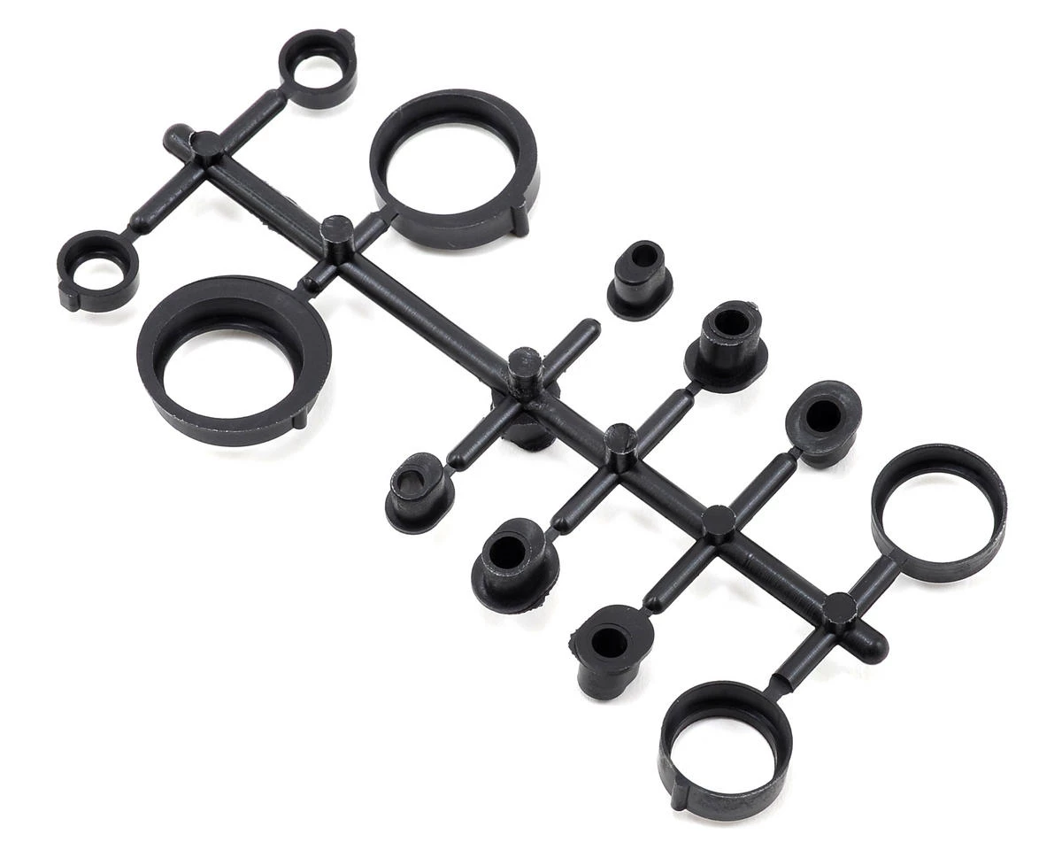 Mugen MRX6 Eccentric Hub Set. Package includes plastic bearing eccentrics, and arm inserts.