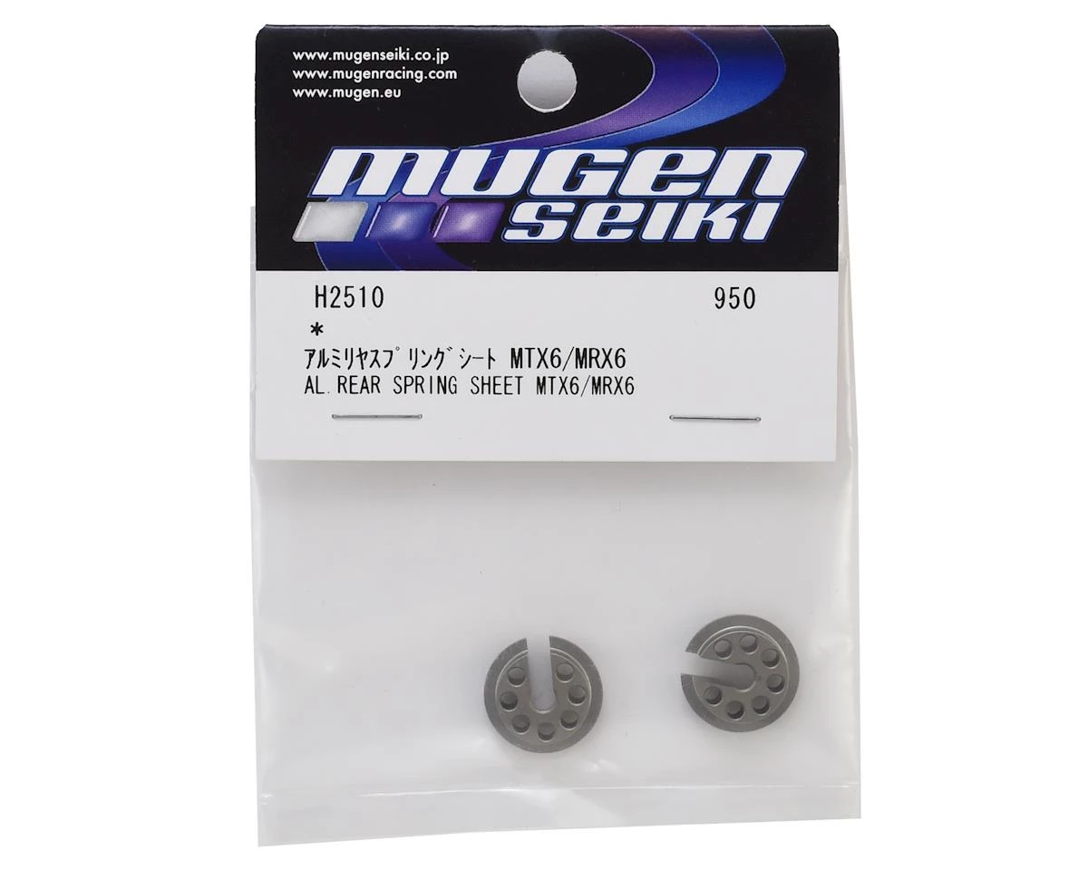 Mugen MRX6R Aluminum Rear Spring Bottom Collar. These are the replacement Rear shock spring cups for the MRX6R and MTX6 models. Package includes two spring cups.Â