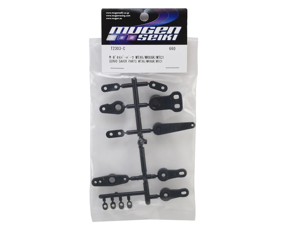 Mugen MRX6R Servo Saver Parts. Package includes replacement plastic servo saver components.