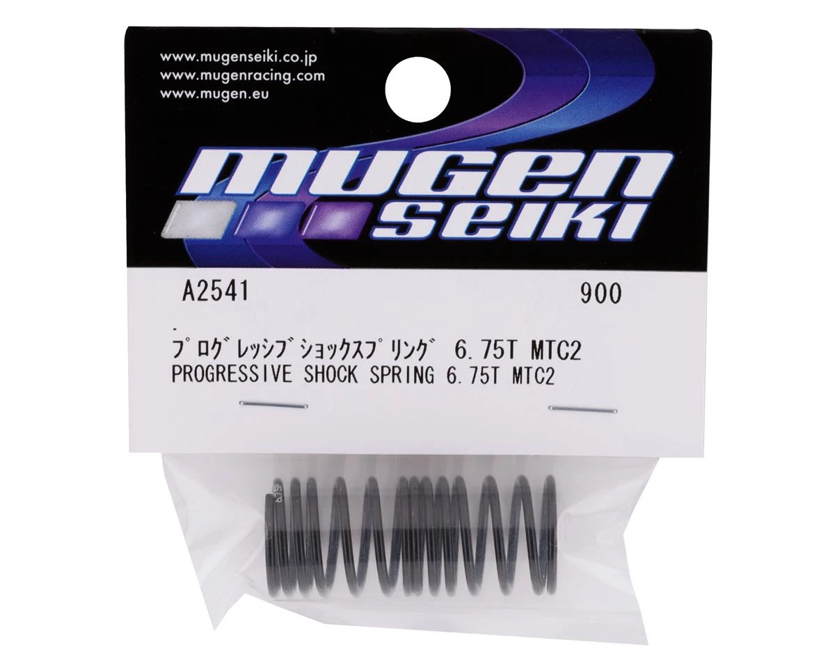 This is an optional set of two Mugen Seiki MTC2 6.75T, Progressive Shock Springs, intended for use with the Mugen MTC2 Electric Touring Car. Compared to the standard springs, by improving the road holding, which improves steering and stability, and reduces posture disturbance due to bumpy road surface. By using MUGA2540 (7.0) for the front and MUGA2539 (6.5) for the rear, the car rolls more smoothly, the accuracy of line taking at the corner entrance is increased, and it is possible to turn with a smaller radius. MUGA2540 (7.0) can be used for both front and rear at the small tracks or with slow motors. Package includes two shock springs.