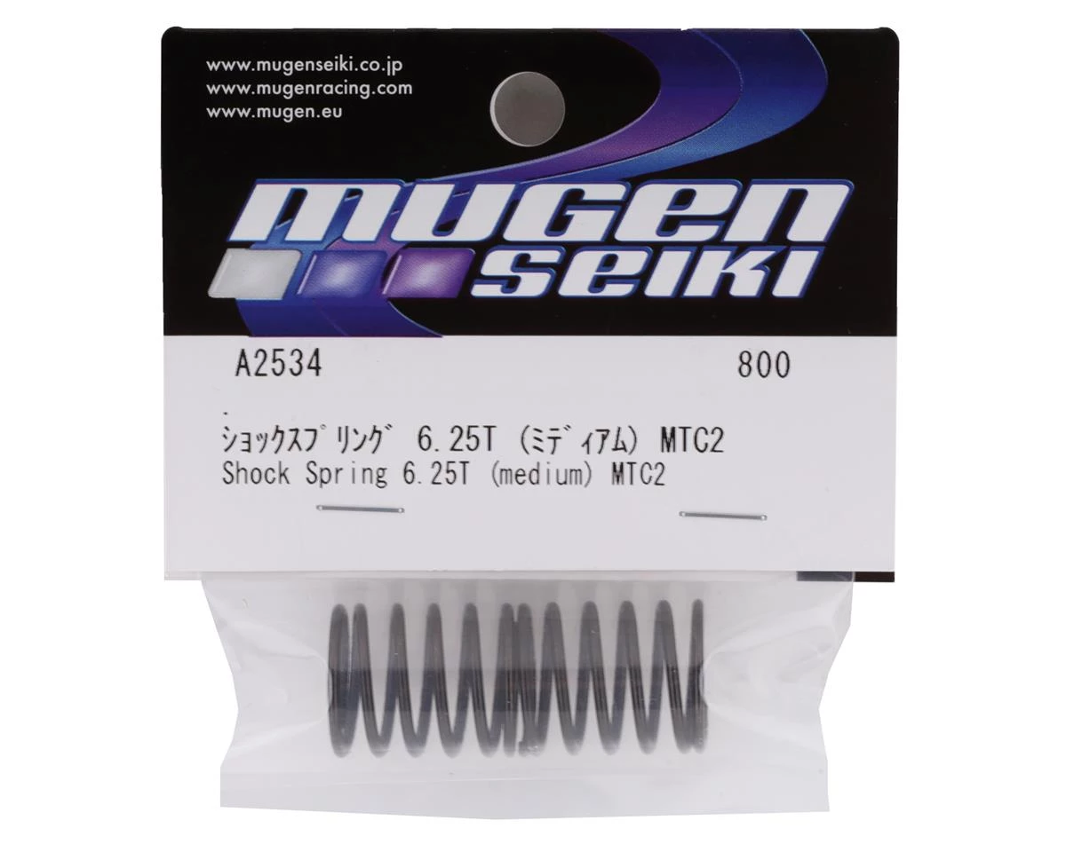 This is a replacement set of two Mugen Seiki MTC2 6.25T, Medium Shock Springs, intended for use with the Mugen MTC2 Electric Touring Car. These springs are used in the rear position in the stock setup.