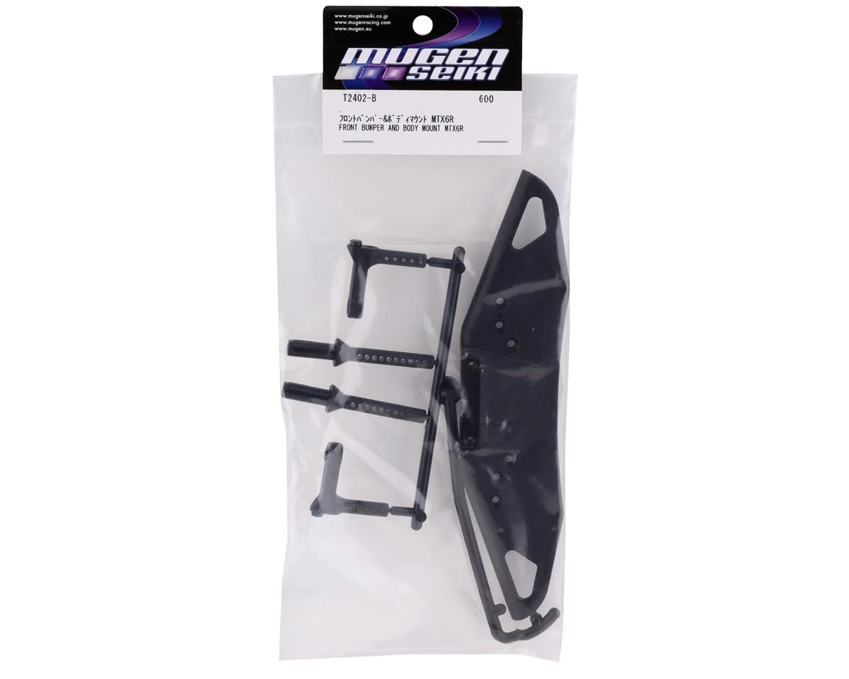 Mugen Seiki MTX7 Front Bumper and Body Mounts. This replacement font bumper and body mount is intended for the Mugen Seiki MTX7. Package includes one front bumper, two front body mounts and two rear body mounts.