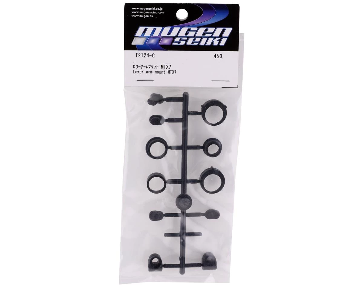 Mugen Seiki MTX7 Lower Arm Mount Bushings/Shims. These replacement bushings and shims are intended for the Mugen Seiki MTX7. Package includes one lower arm mount bushing and shim kit.