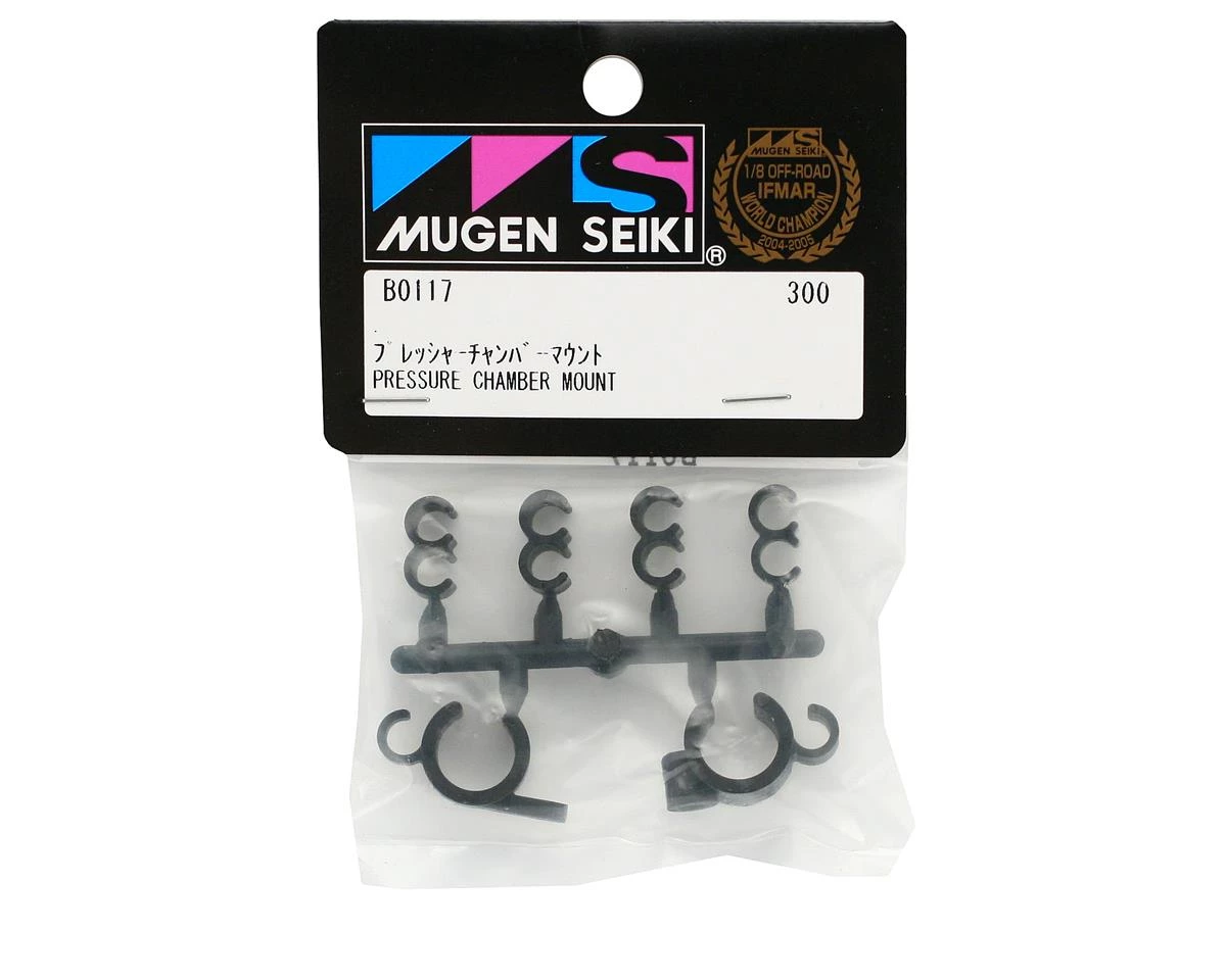 This is a replacement pressure chamber mount set from Mugen. This mount set is used to secure the optional pressure chamber to your car.