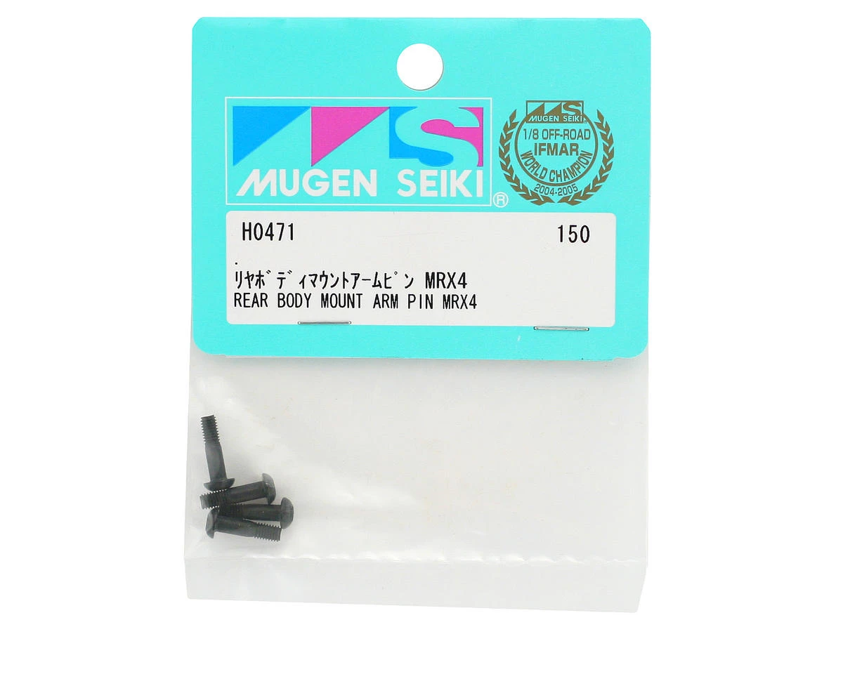 This is a pack of four replacement Mugen Rear Body Mount Arm Pins, and are intended for use with the Mugen MRX5 and MRX4X 1/8 scale on road cars.