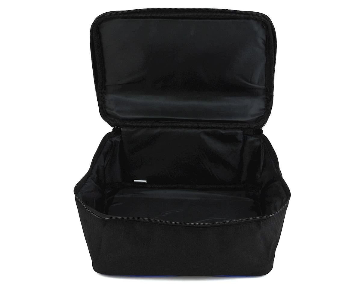 The Mugen Shock/Diff Fluid Bag will hold up to 26 bottle of Flash Point diff and shock oil bottle. It can also be used to store nitro engines, parts, tools, chargers and more! The bag measures 10″ x 8″ x 4.5″ and features the Mugen Seiki logo on the lid.