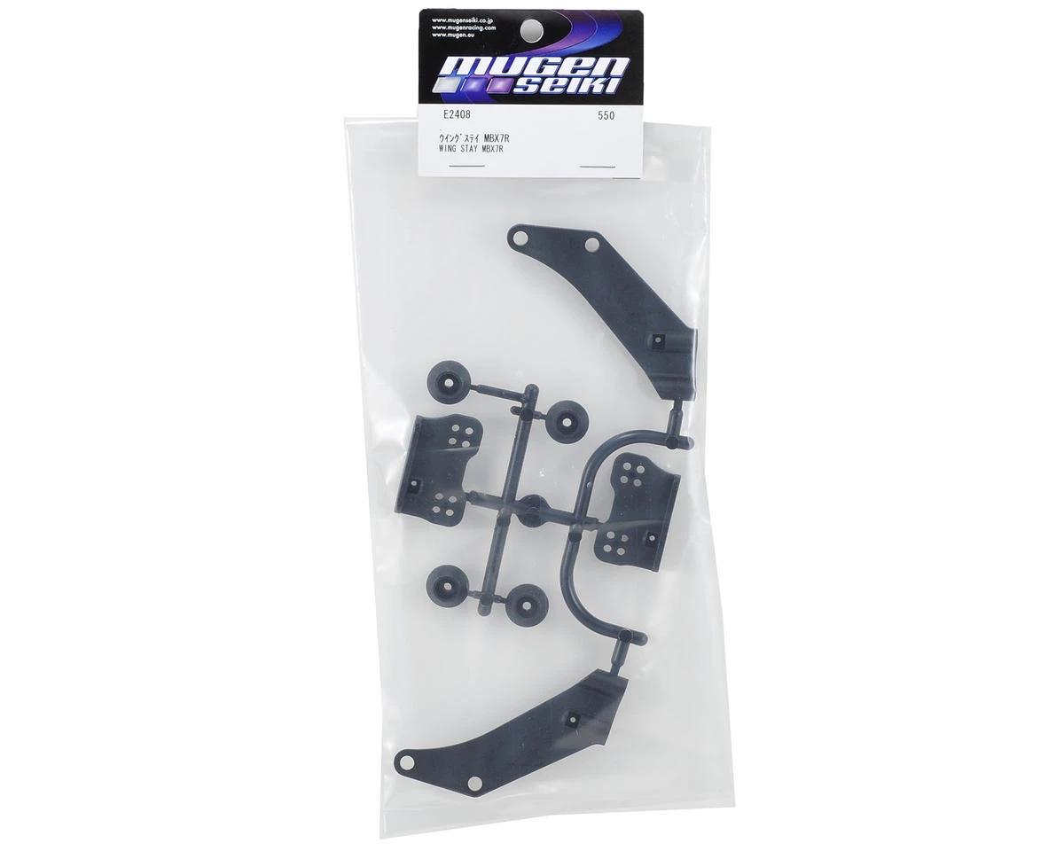 This is a replacement Mugen Wing Stay Set. This redesigned wing mount can move the wing forward a maximum 10.5mm to improve traction and overall feel of the buggy.